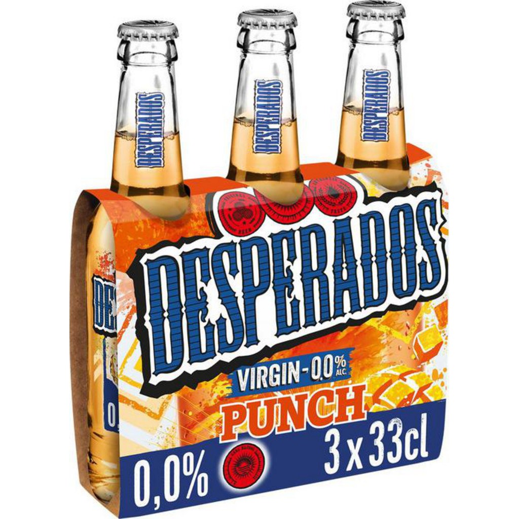 Bières de la marque DESPERADOS [pack de 3]. DESPERADOS Bière Sans Alcool Aromatisée Ananas, Mangue et Citron Vert (pack de 3 bouteilles de 33CL). EAN pack de 3: 3119789831662.