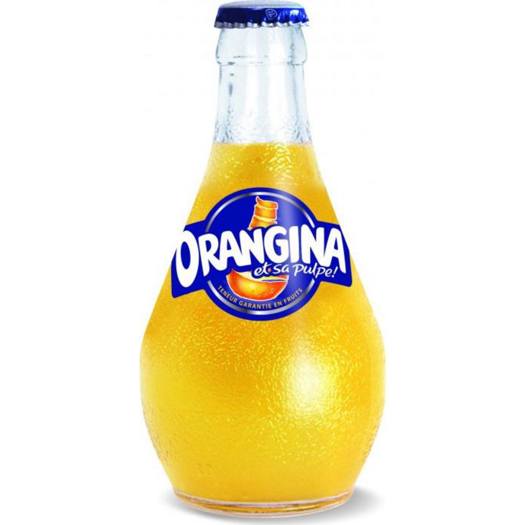 Un grand classique des boissons rafraîchissantes. Orangina a su préserver une image de modernité et de produit branché depuis son origine. Sa composition et la présence relativement importante de pulpe d'orange vous apporteront une richesse et un plaisir nullement égalé. Eau gazéifiée, jus d'orange et autres agrumes à base de concentrés 12% (orange 10%, citron, mandarine, pamplemousse), sucre, pulpe d'orange 2%, extrait de zeste d'orange, conservateurs: benzoate de sodium et sorbate de potassium, arômes naturels d'orange.